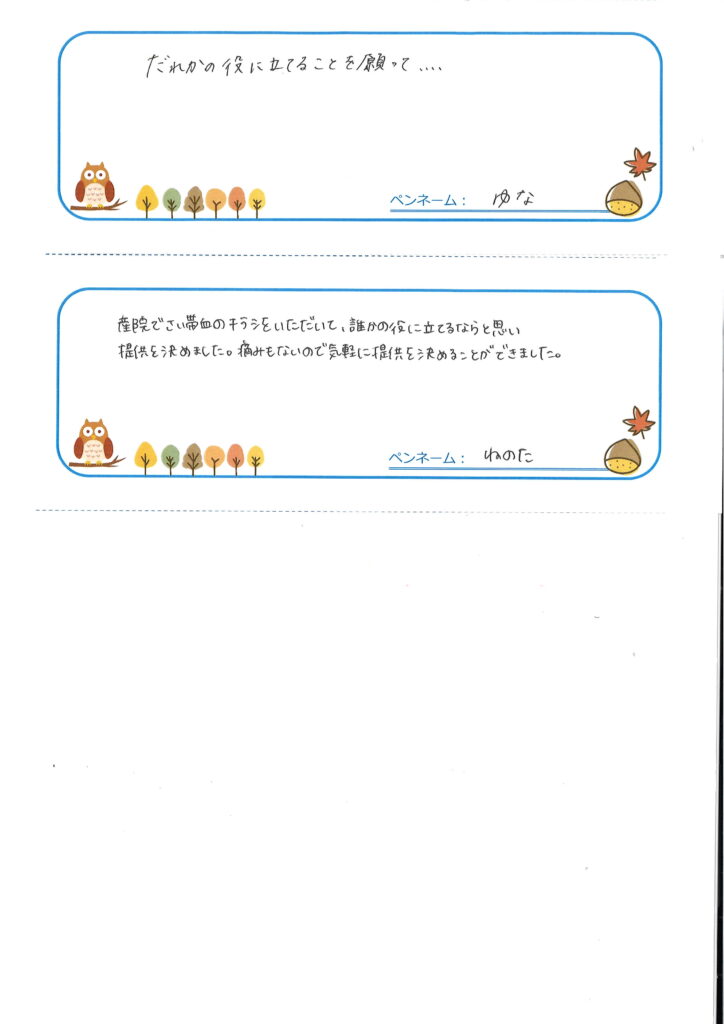 さい帯血を提供したママから