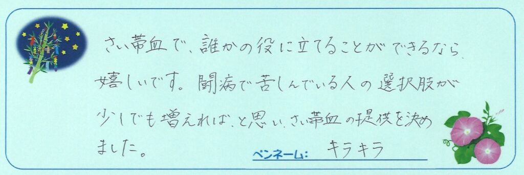 さい帯血を移植された方から