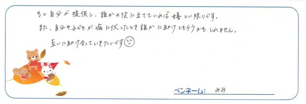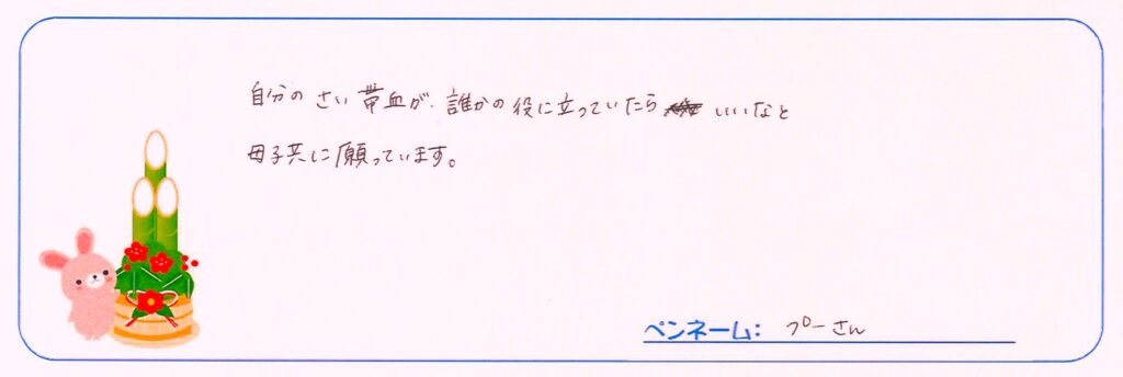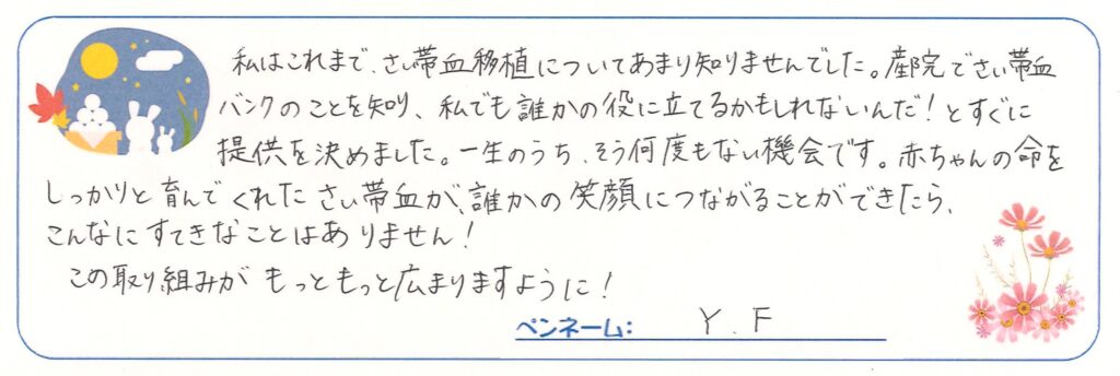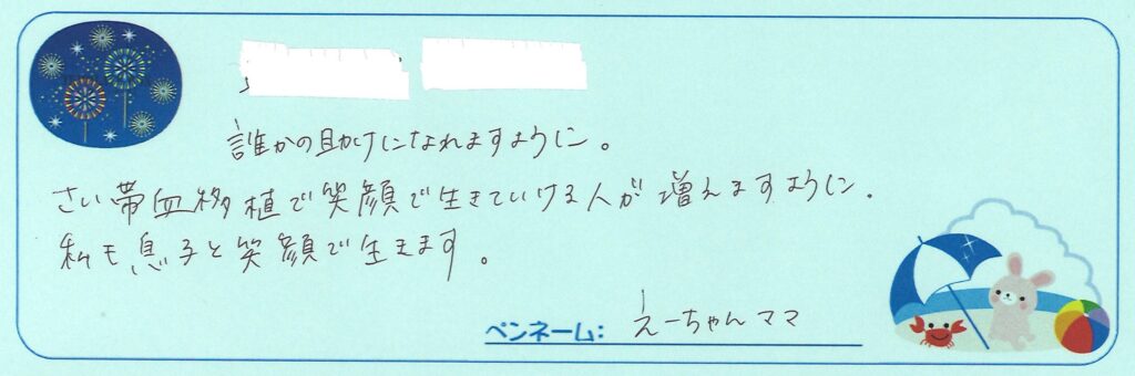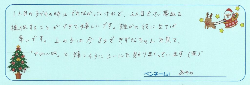 さい帯血を提供したママから